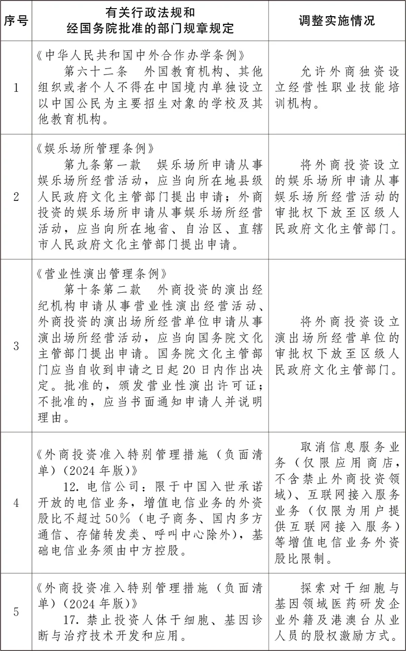 据中国政府网1月10日发布,按照《国务院关于〈支持北京深化国家服务业扩大开放综合示范区建设工作方案〉的批复》(国函〔2023〕130号),同意自即日起,在北京市暂时调整实施《中华人民共和国中外合作办学条例》《娱乐场所管理条例》《营业性演出管理条例》《外商投资准入特别管理措施(负面清单)(2024年版)》的有关规定。