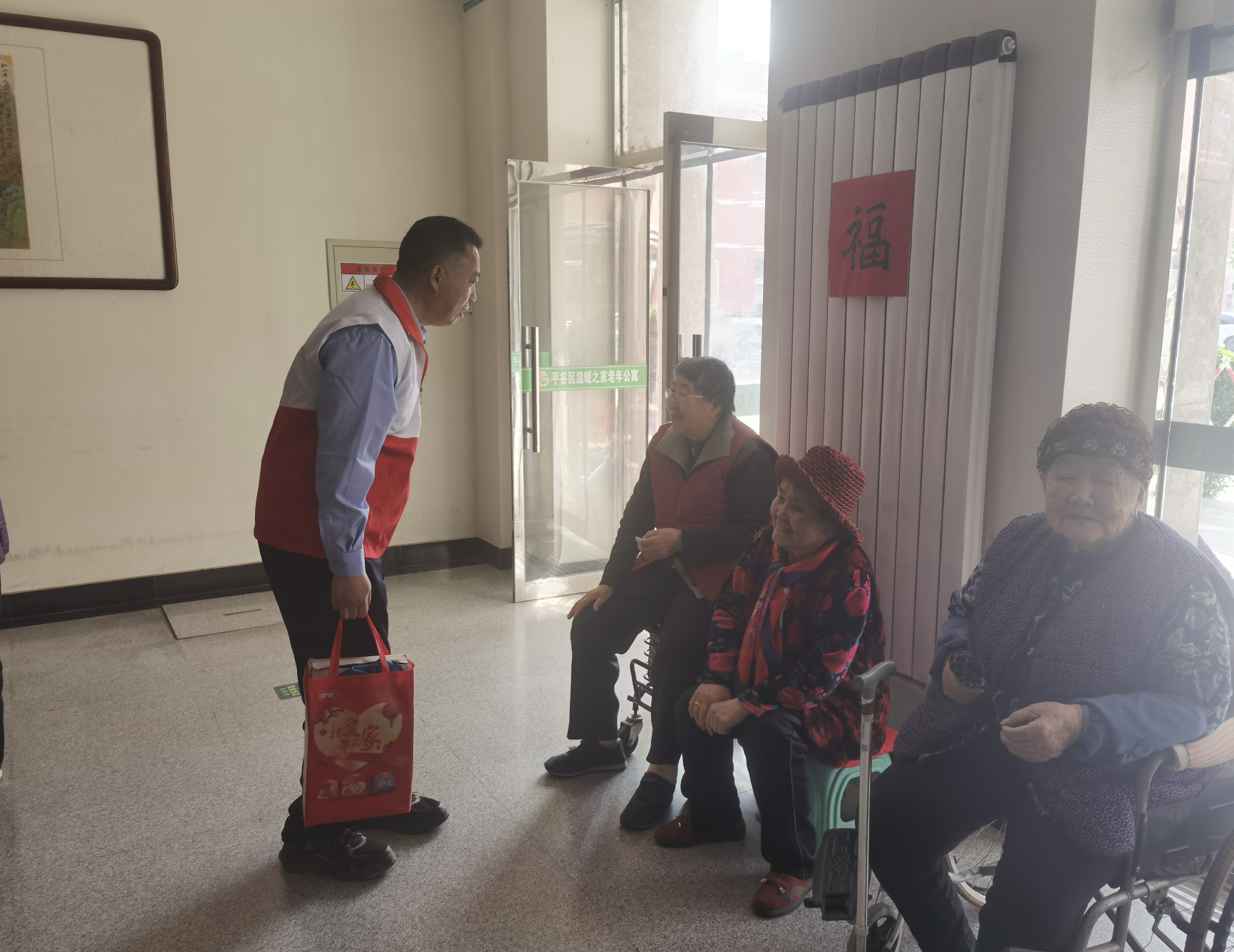 11日上午9点,第二车队行政队长何帅带领职工们准时来到了老年公寓。此时,徐强院长已经早早的在门口等待他们的到来,徐院长高兴地说:“欢迎大家,感谢大家再次来到我们老年公寓,给老人们带来了贴心与温暖,我代表老人们感谢你们”。“看您这客气的,咱们都是老熟人了,每年都来好几次呢,看看老人们我们也踏实”何队长说到。