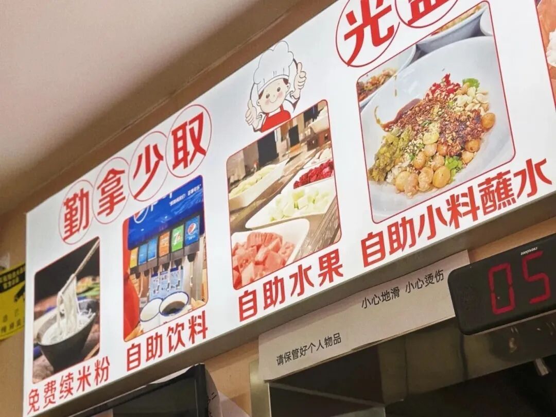 主打贵州生烫米线的店,工作日中午很多上班族来吃。招牌是酸汤鲜牛肉米粉,蘸水自助,可以自己加的调料很多。汤底酸辣开胃,给的生烫牛肉肉片量挺足。米粉可以免费续,饮料、水果都是自助取用。