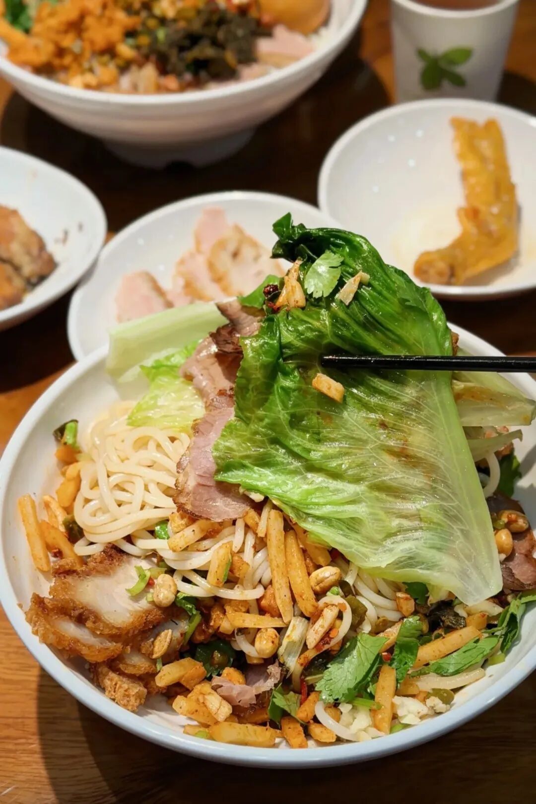20元的平价素食自助,刚开门的时候很火爆,门口都是排队的人。进门交钱后,拿一个盘子一个碗就可以去选菜了。菜品种类很多,主食有面点、炒粉炒面、米饭、粥、胡辣汤等;热菜凉菜加起来也有几十种。还有档口可以吃到现做的馄饨热干面等。还是很值的。