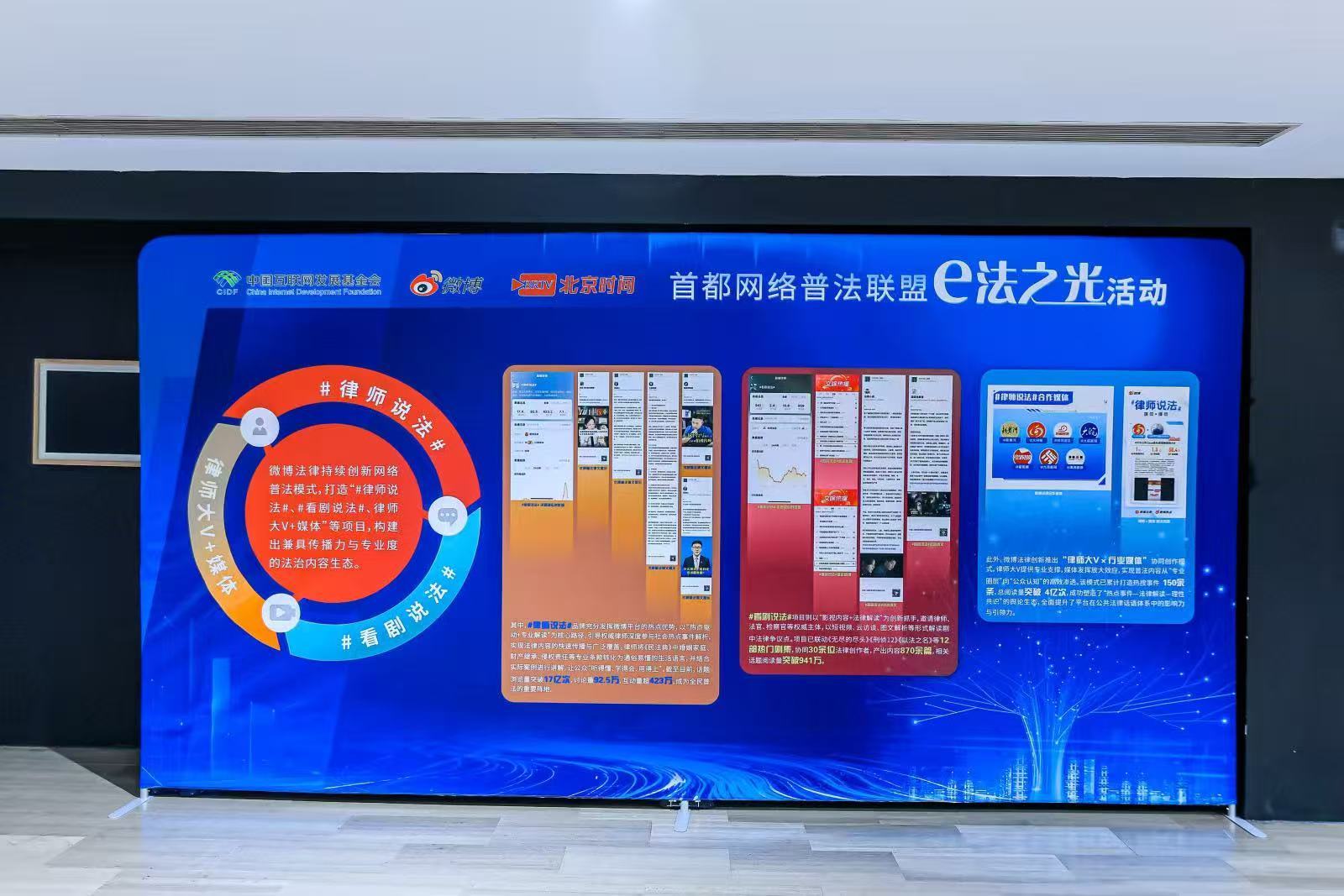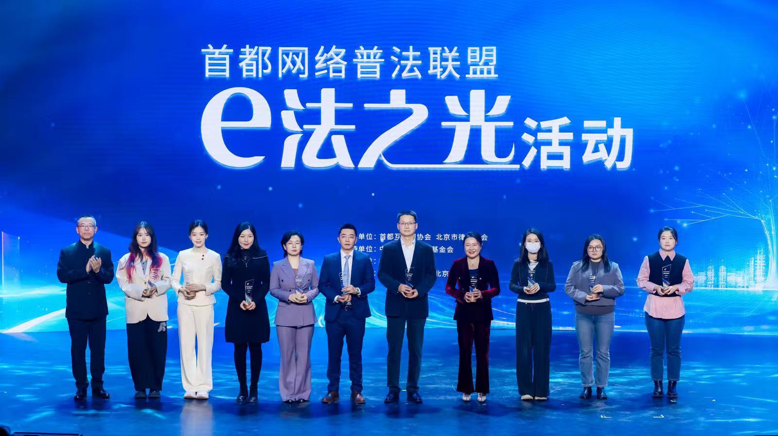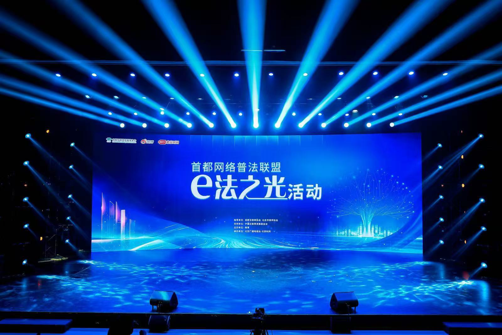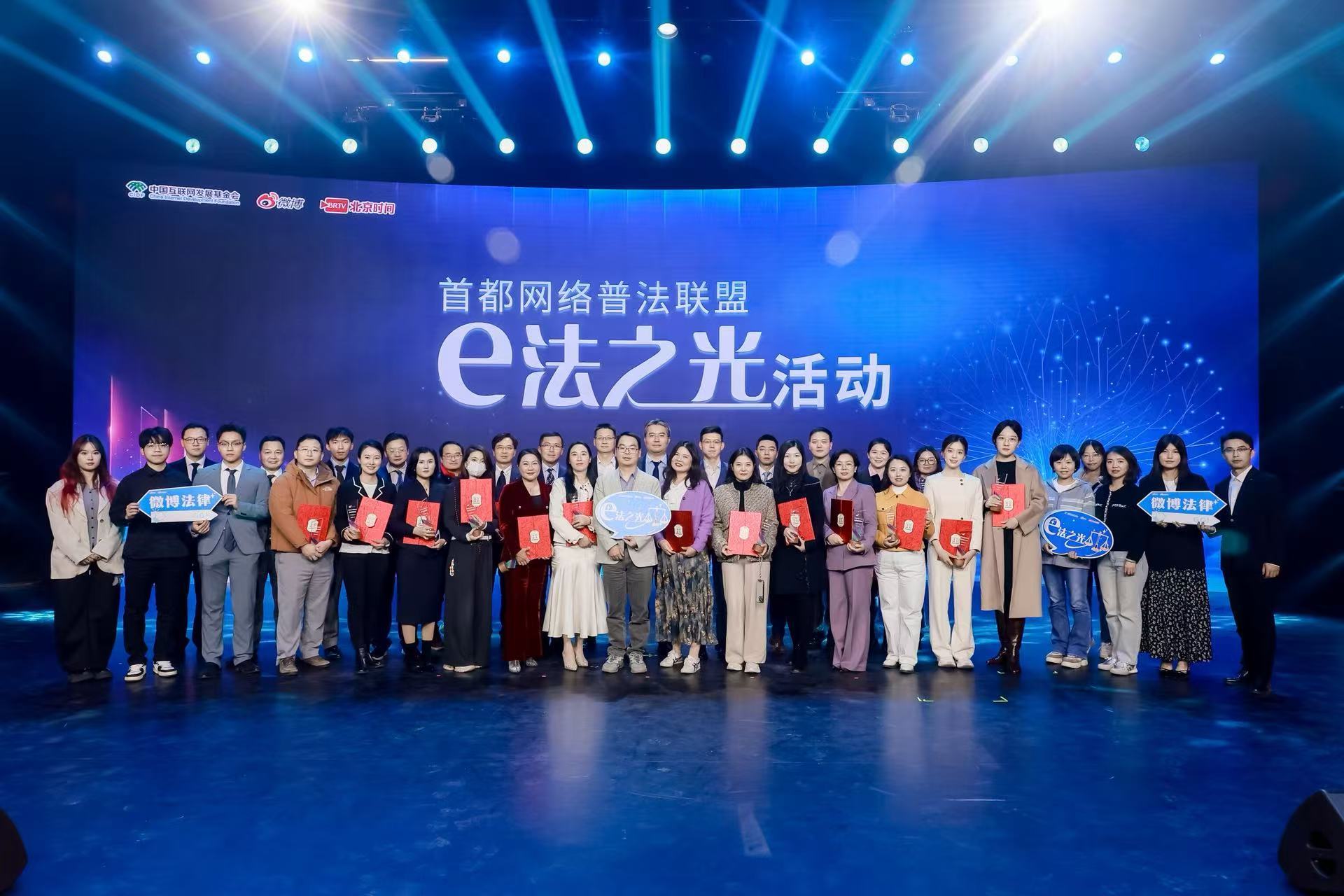 2025年11月18日晚,首都网络普法联盟“e法之光”活动在中华世纪坛圆满举行,活动由首都互联网协会、北京市律师协会指导,微博主办,北京广播电视台北京时间承办。全国各地党政机关、行业组织、主流媒体、网站平台、在京高校、专家学者、网络名人代表等300余人到场参加。
