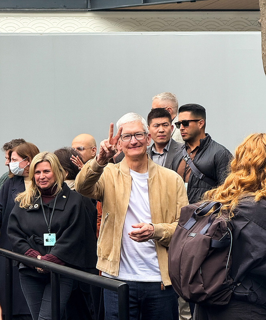 3月18日,库克现身成都太古里,参加苹果公司50周年特别活动。图源:视觉中国
