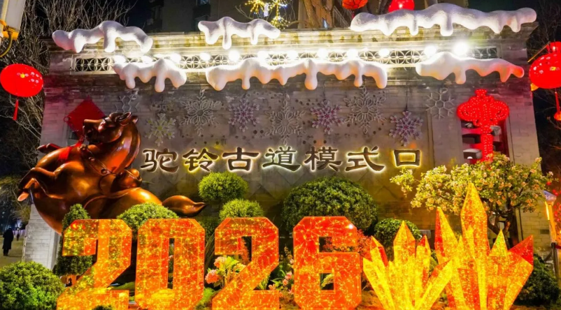 “花漾模式口”新春灯会璀璨绽放,千盏华灯点亮千年驼铃古道,模式口新春灯会紧扣马年生肖主题打造“瑞马迎春”“马上大桔”“摩登雪夜”等十二组特色灯景,沿模式口大街次第铺展。