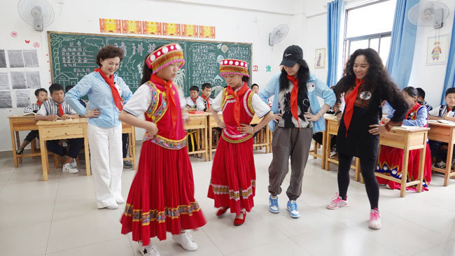 “少年智则国智,少年富则国富;少年强则国强,少年独立则国独立;少年自由则国自由;少年进步则国进步。”在海霞的领读下,和谐小学的同学们用普通话齐声朗诵《少年中国说》;教室里,海霞和齐子昕为和谐幼儿园的小朋友们声情并茂地表演《小蝌蚪找妈妈》的故事,和同学们学跳当地的民族舞蹈……