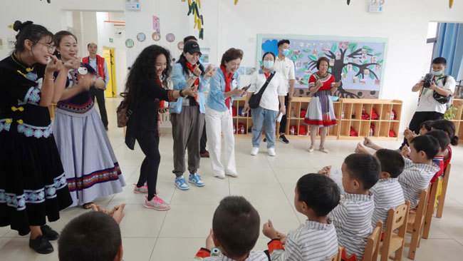 全国政协委员、国家一级演员、普米族歌手茸芭莘那,作为从怒江走出去的优秀代表,也向小朋友们介绍了自己走出大山、与人交流的经历,鼓励孩子们也像自己一样,学好普通话,去见识更大的世界。