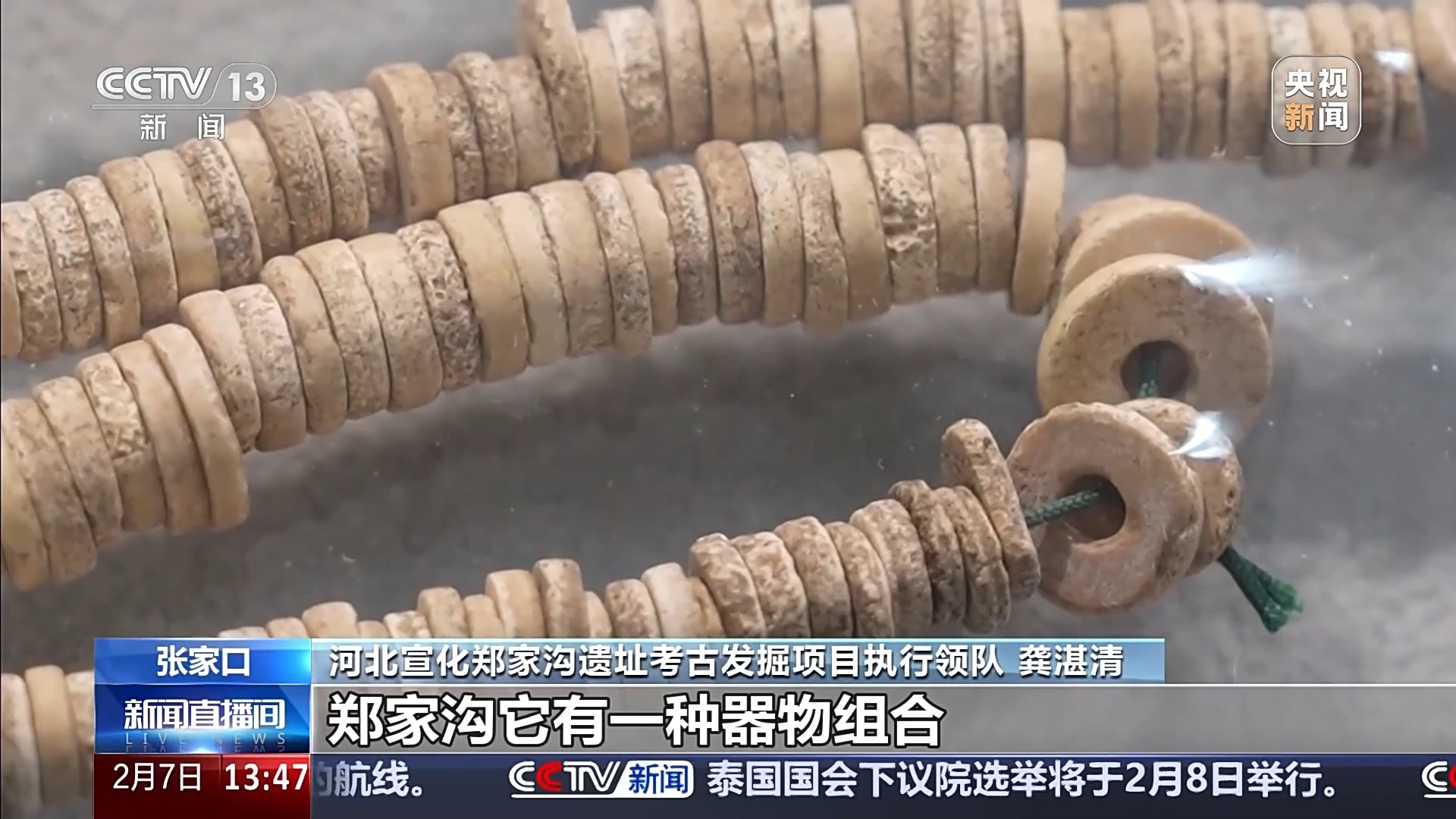 河北宣化郑家沟遗址考古发掘项目执行领队 龚湛清:郑家沟有一种器物组合,由蚌做的串珠,还有螺做的串饰,还有天河石片,它与红山文化出土的器物组合的特征是不太一样的。
