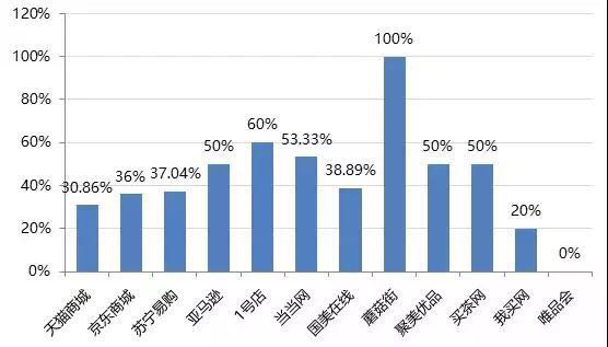 统计数据显示,天猫商城、京东商城、苏宁易购、国美在线4个平台均有超过3成样品不达标;亚马逊、聚美优品和买茶网3个平台有一半样品不达标;1号店和当当网两个平台均有超过一半样品不达标;蘑菇街5个样品全部不达标,不达标率最高。