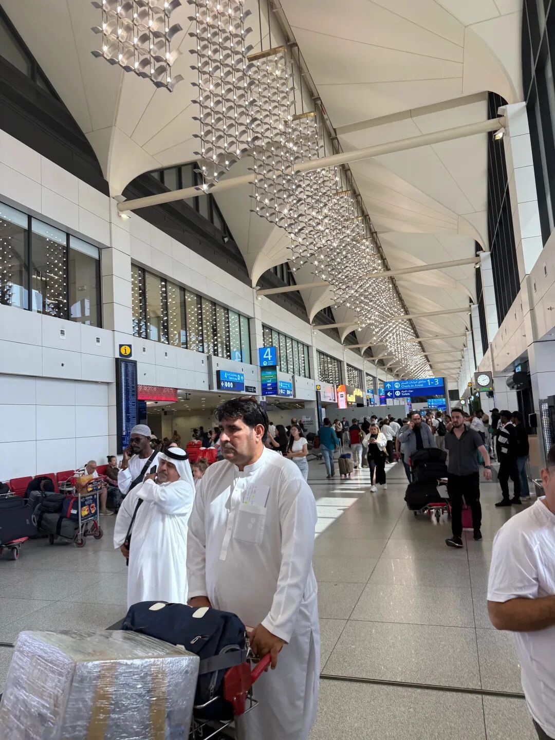 2月28日晚至3月1日凌晨,阿联酋迪拜国际机场航站楼遭到战火波及,机场航班全面取消,大量旅客被迫滞留。