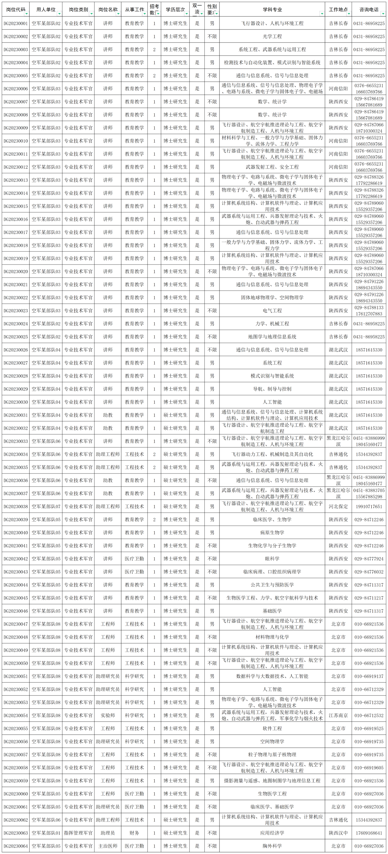 空军直接选拔招录岗位,主要补充空军部队、院校、科研训练机构等单位军官岗位。