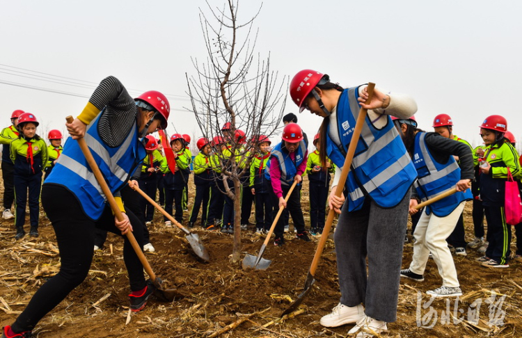 植树节到来之际,中建二局与东张楚小学联合在雄安“千年秀林”举行“播种绿色、播种文明”植树活动,共同栽下“雄安树”“园丁树”“心愿树”,为雄安“千年秀林”添新绿。雄安新区设立以来,已累计造林约41万亩。河北日报记者耿辉摄影报道