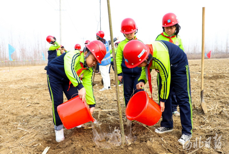 2021年3月11日,容城县贾光乡东张楚小学师生共同种下“雄安树”。