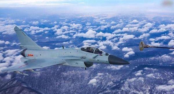 中国空军伊尔-78空中加油机给国产战斗机空中加油,注意受油探头在右侧