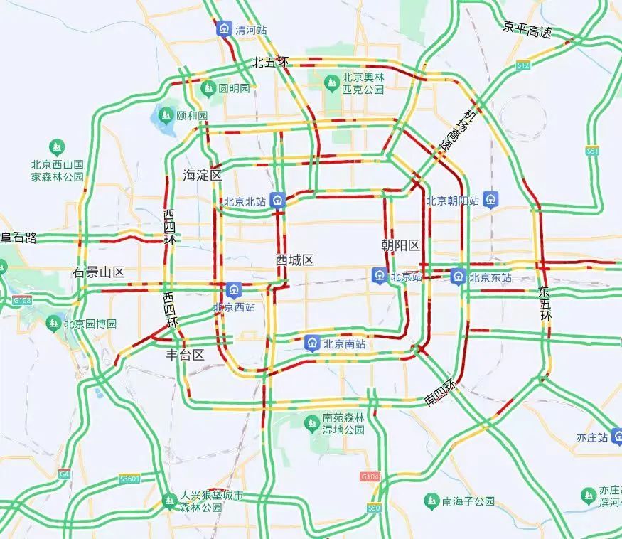 晚高峰期间,城区东部、北部、西部主要环路,万泉河路、阜石路、莲石路、菜户营南路等主要联络线,京藏、京承、京港澳、京开、京通快速等高速公路出京方向局部路段可能出现短时交通压力较大的情况。