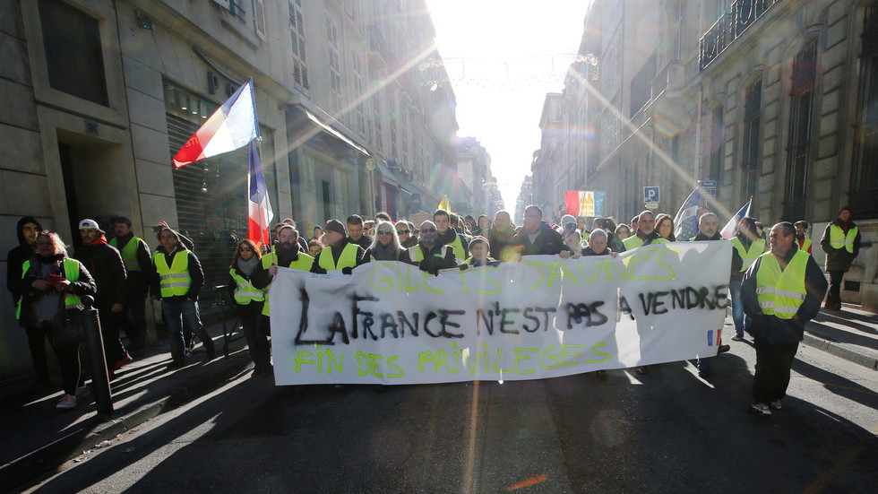 本周早些时候,法国总理爱德华·菲利普宣布了打击"未经授权的抗议活动"的计划。此前,"黄背心"抗议者曾开着叉车冲进了法国政府办公大楼,并与武装防暴警察发生了暴力冲突,其中甚至还包括了一名法国前轻重量级拳王。为避免再发生暴力事件,菲利普承诺将为下一次抗议部署8万名警察维持治安。
