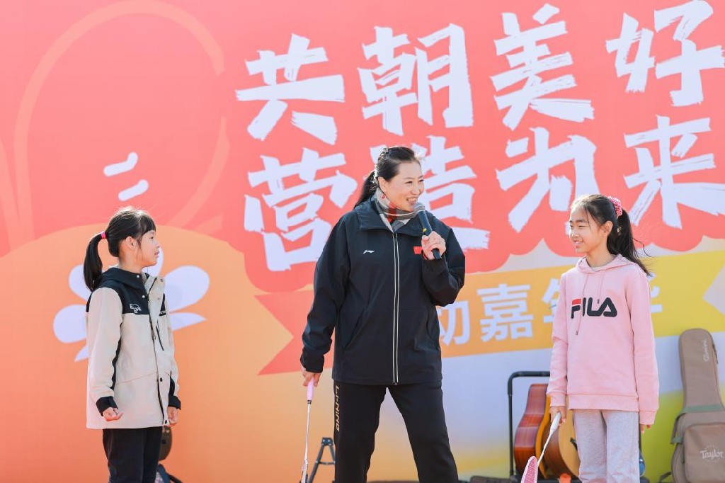 羽毛球奥运冠军张宁惊喜亮相本次活动,并为赛事鸣枪启程。在随后的互动环节中,她走进“为来故事营”,结合自身拼搏经历激励青少年“永不言弃、勇攀高峰”;在“趣味运动亲子互动区”,她与市民一同感受匹克球、布袋球等潮流运动的乐趣。