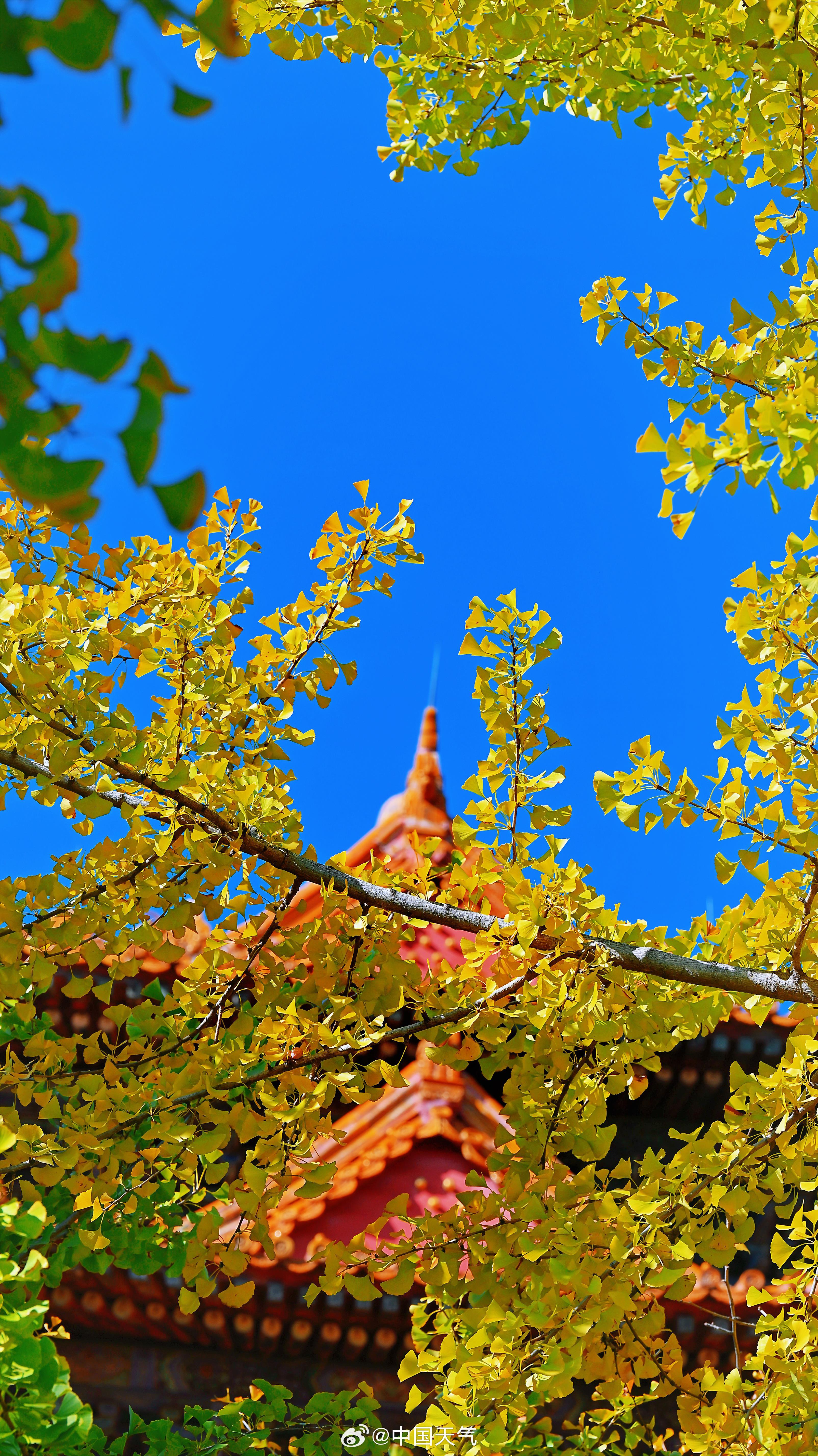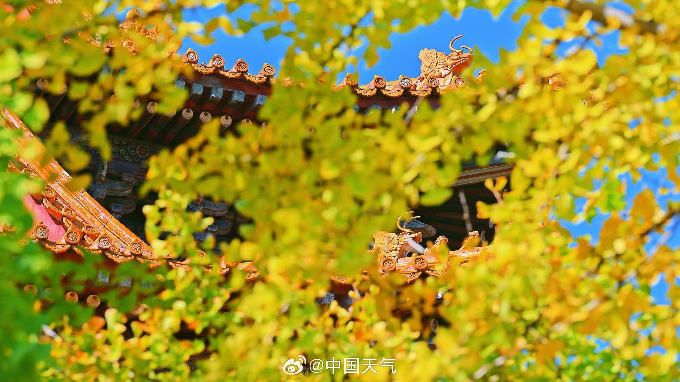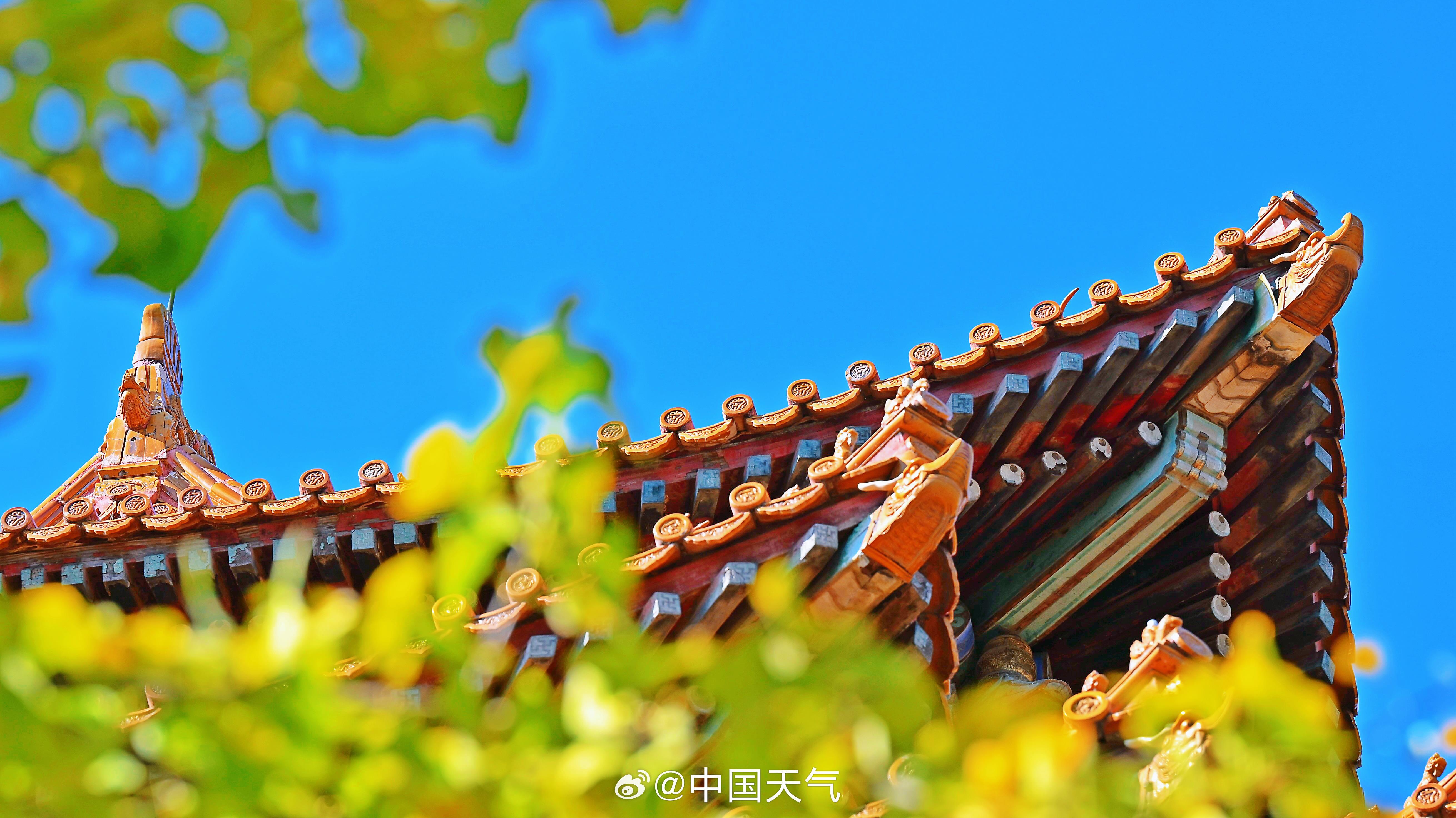 今天(21日),北京天空湛蓝纯净,故宫角楼的飞檐翘角与秋叶相得益彰,尽显古典之美。
