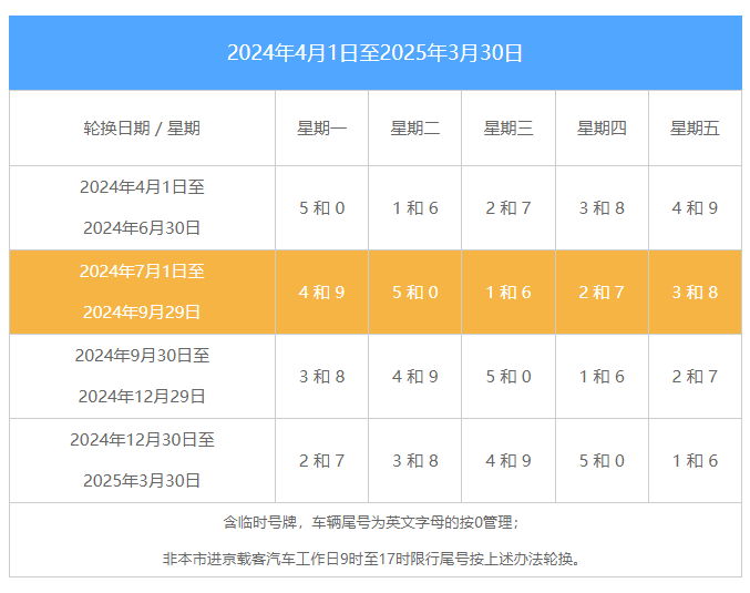 9月30日起,北京市机动车尾号限行进入新一轮轮换期。