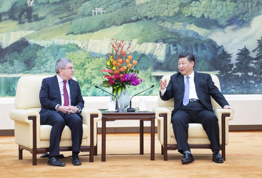 2019年1月,北京,习近平会见国际奥委会主席巴赫。(新华社记者李涛 摄)