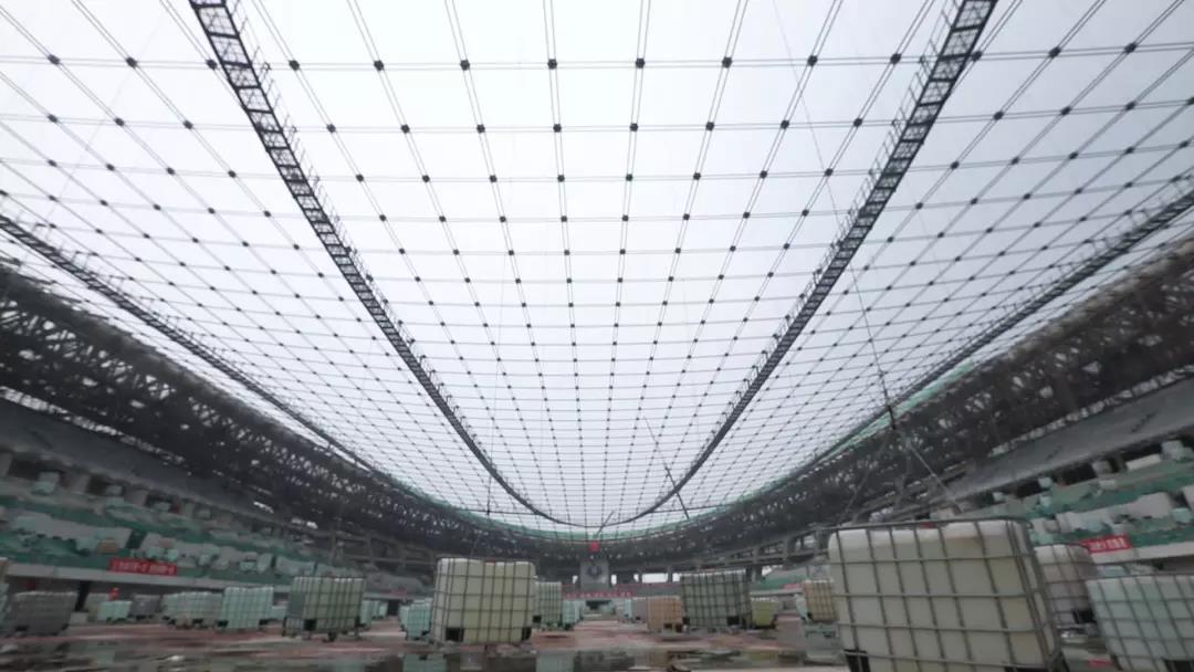 世界体育场馆中最大的单层双向马鞍形索网屋面: