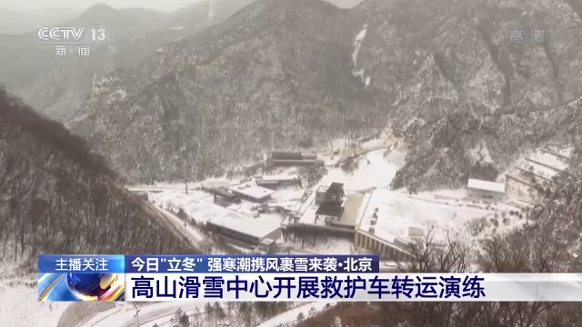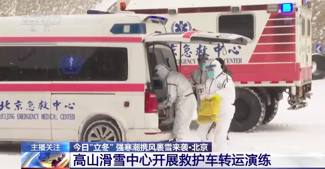 此外,赛区的运行团队还跟医疗保障团队进行了医疗急救的演练。因为能见度特别低,所以他们就模拟在赛时,救援直升机到达不了赛区的情况,所以,就要派山地急救车把受伤的运动员快速转运到相应的医疗急救点,转运到山下。