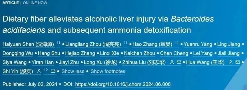 2024年7月2日,《细胞·宿主和微生物》期刊上发表的一篇研究,首次揭示了膳食纤维缓解肝损伤的机制。