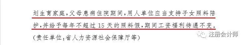 根据新华社的消息,山西省在去年10月出台的《关于开展老年人照顾服务工作实施意见》明确指出:对于父母年满60周岁的计划生育家庭,父母患病住院期间,用人单位应当支持子女照料陪护,并给予每年不超过15天的照料假,其间工资福利待遇不变。也就是说,如果你是独生子女,如果你的父母生病了,你不仅可以请15天假期去照料,而且在此期间,工资还不能少!