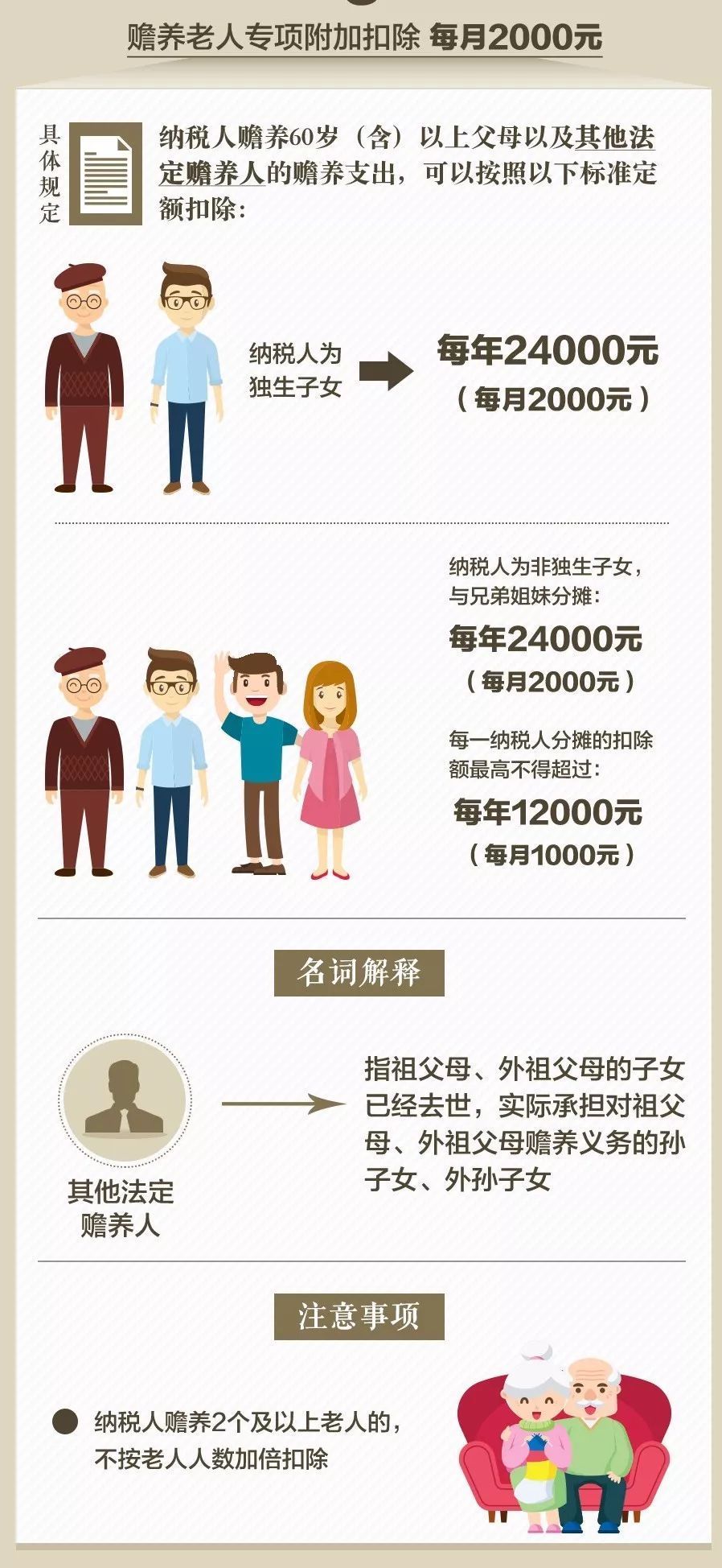2019年1月日起,新个税也开始实施,赡养老人也被纳入到专项扣除中来。《国务院关于印发个人所得税专项附加扣除暂行办法的通知》(国发〔2018〕41号)提到“独生子女”有两处:1、纳税人为独生子女的,赡养老人支出按照每月2000元的标准定额扣除;2、卫生健康部门向税务部门提供或者协助核实有关出生医学证明信息、独生子女信息。那么,需要证明自己是“独生子女”,进而每月按2000元的标准定额扣除?
