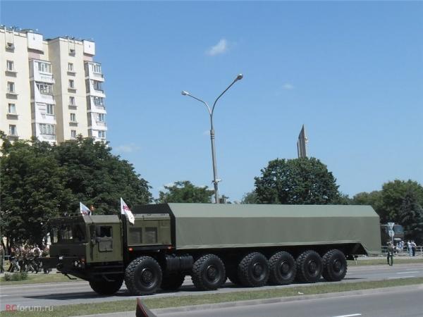 此前白俄罗斯在阅兵式上展示的明斯克车辆厂为Rs-26导弹开发的MZKT-27291型12*12导弹发射车