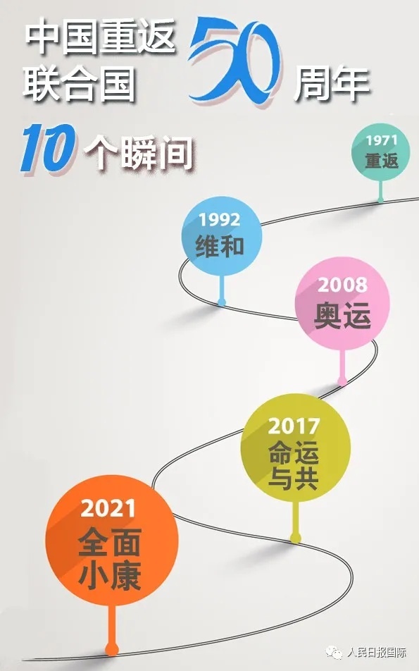 2021年是中华人民共和国恢复联合国合法席位50周年。这是中国践行多边主义的50年,是中国全面参与和支持联合国事业的50年,也是中国持续为世界和平与发展作出贡献的50年。站在新的历史起点上,中国将同世界各国携手前行,为推动构建人类命运共同体而不懈努力!