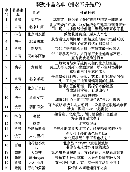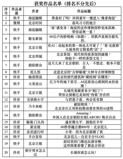 “北京范儿”短视频大赛第一季获奖作品揭晓!蒙曼、贺峻霖等获奖_北京时间