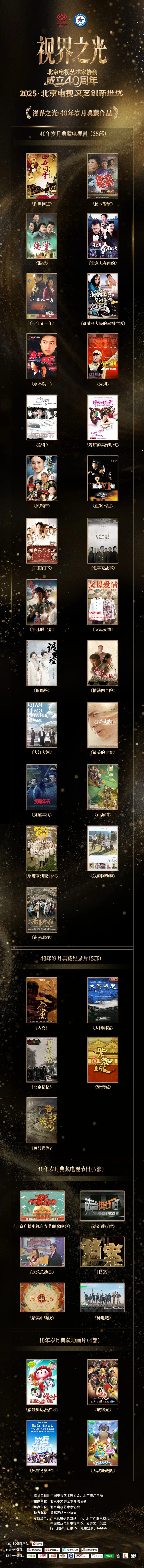 现场同时揭晓了“40年·时代印记”典藏作品,共选出40年来40部具有标志性意义、承载时代记忆、展现艺术成就的代表作品,以此致敬北京电视艺术40年来的辉煌历程,传承电视文艺的宝贵创作经验。