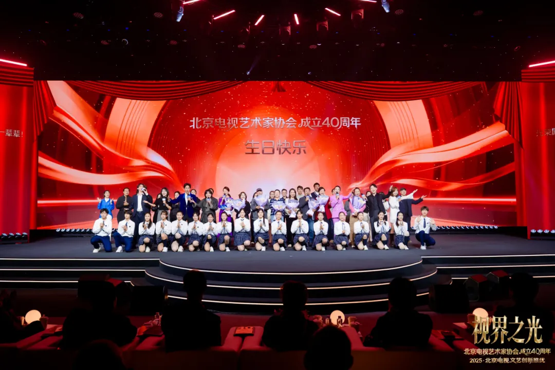 活动最后,北京电视艺术家协会向长期以来默默奉献的理事及会员代表致以诚挚谢意。在热烈的掌声中,全场共同唱响《年轻的朋友来相会》,用熟悉的旋律为协会40周年庆典画上圆满句号。这场跨越代际的合唱,既是对四十年电视艺术薪火相传的生动诠释,也寄托着对未来的美好期许。
