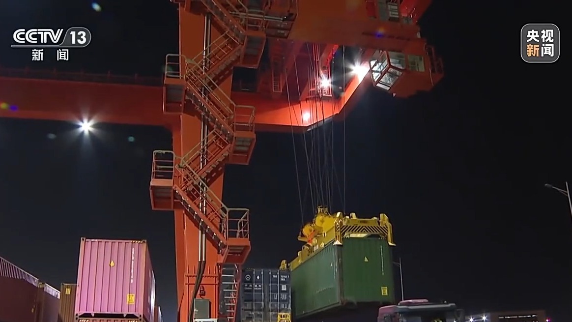本周五,一列海铁联运班列停靠在合肥派河铁路货运站。龙门吊起起落落,将集装箱稳稳放进列车,这些集装箱将被火车送达宁波舟山港。在合肥的这个货运站,记者看到了宁波海关工作人员的身影。