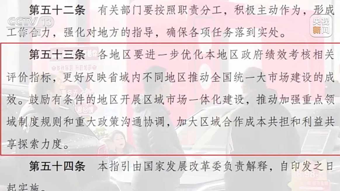 建设全国统一大市场,要求地方政府做到全国一盘棋,破除地方保护和市场分割。但人口和企业流动,会带来经济数据和税收的增与减,这也对地方政绩考核标准提出了新的要求。为此《指引》提出,各地区要进一步优化本地区政府绩效考核相关评价指标,更好反映省域内不同地区推动全国统一大市场建设的成效。