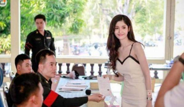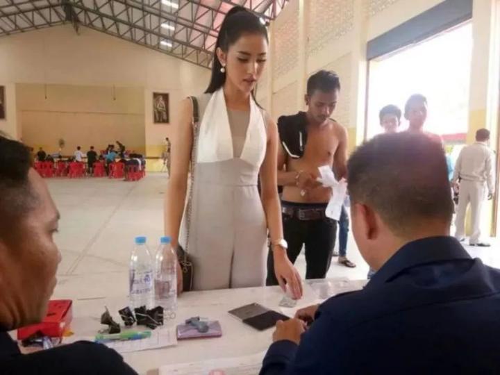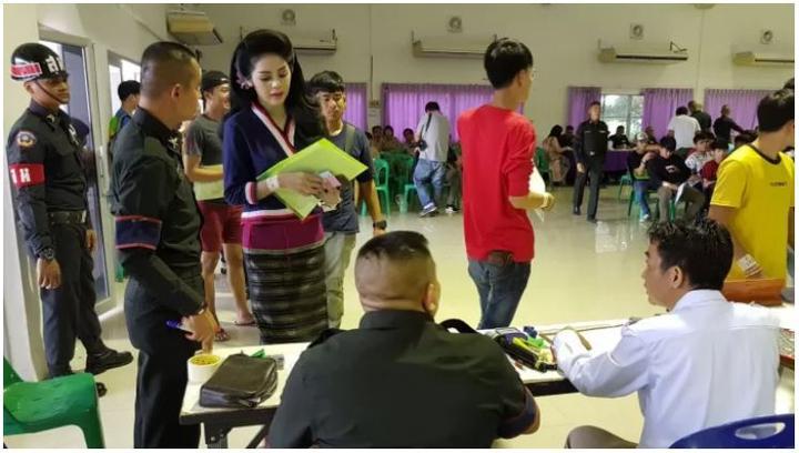 泰国彭世洛府瓦波县4月1日举行了2019年度征兵筛选,有410名适龄泰国男子前去参加。其中22岁的变性人帕努蓬身着泰式服装,顶一头乌黑的大波浪卷发,带着精致妆容奔赴现场,瞬间成为征兵现场焦点。