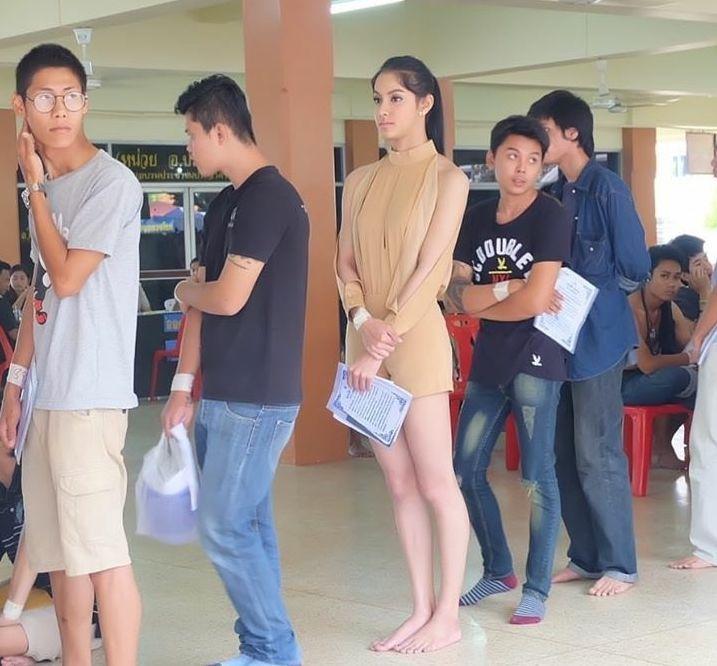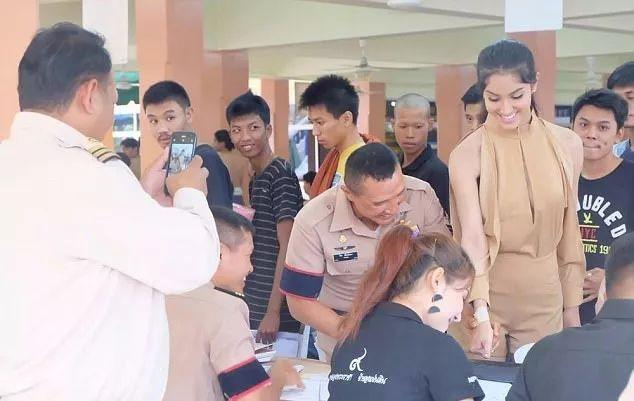 据泰国《世界日报》4月1日消息,彭世洛府瓦波县实际征用的新兵只有67人,分别为42名陆军、11名空军和14名海军,单是上午就有12人志愿入伍。现场最惊艳的是变性人帕努蓬(22岁),他曾在众多变性人选美舞台上取得良好成绩,最近又在帕府变性人选美大赛中拿了第1名,目前就读于泰国戏剧艺术学院3年级。