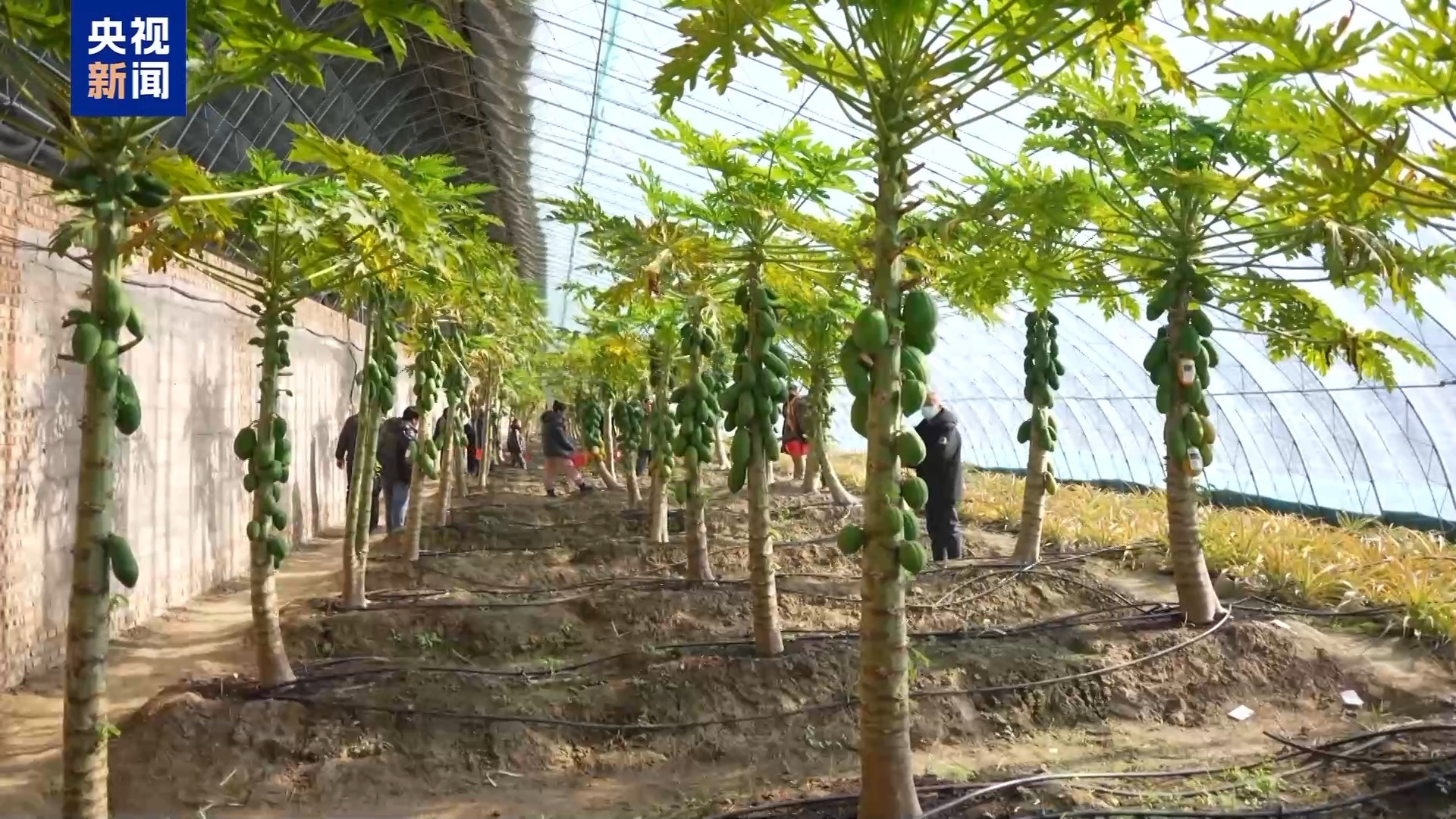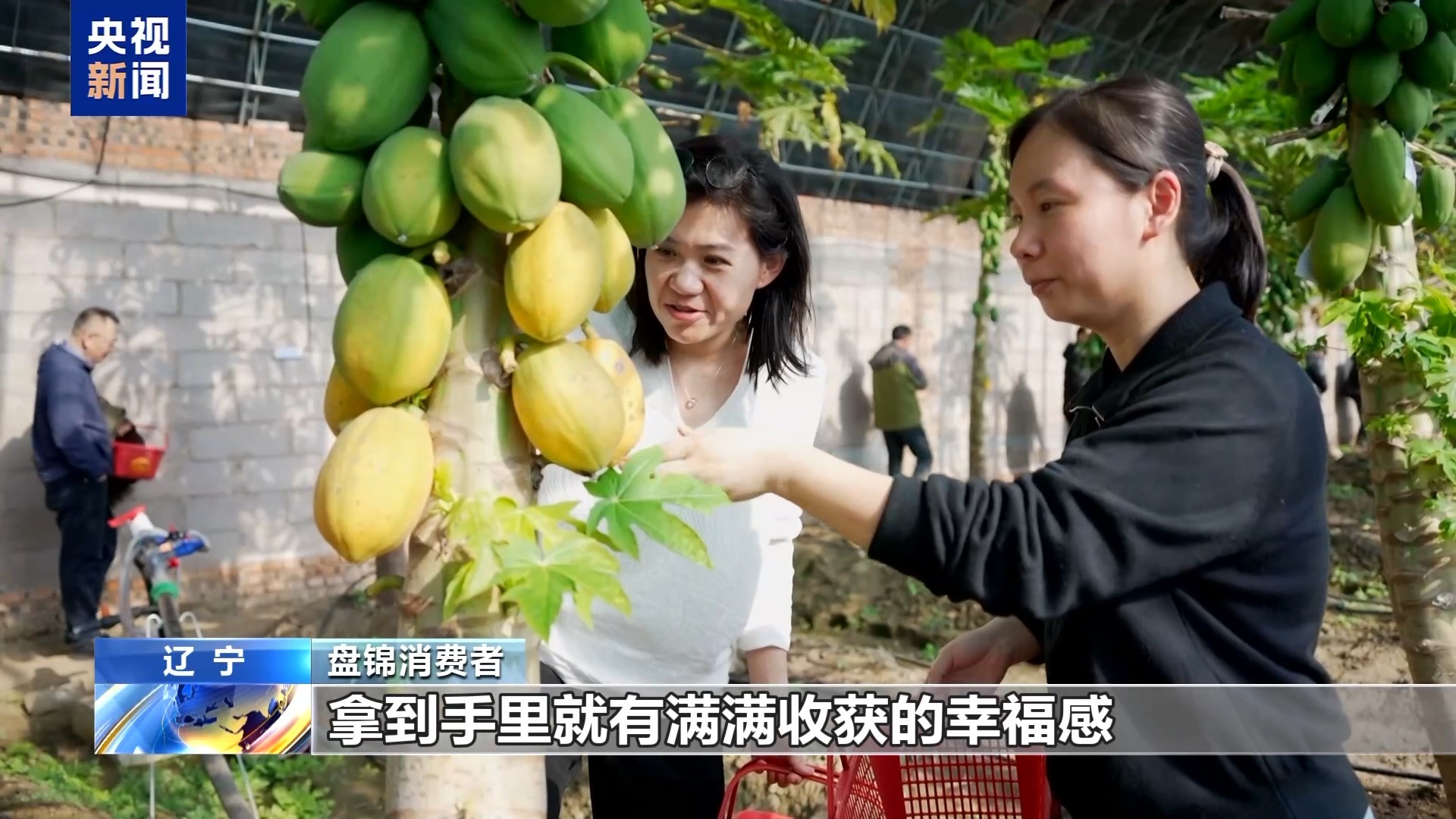 南北年货的流动不仅出现在年货大集,在果园、在工厂,我们也能看到南北方食物迁徙的轨迹。在辽宁盘锦的一处生态农场,原本是盐碱地,如今挂满了海南木瓜、广西释迦等南方水果,成为节前市民采摘的热门去处。