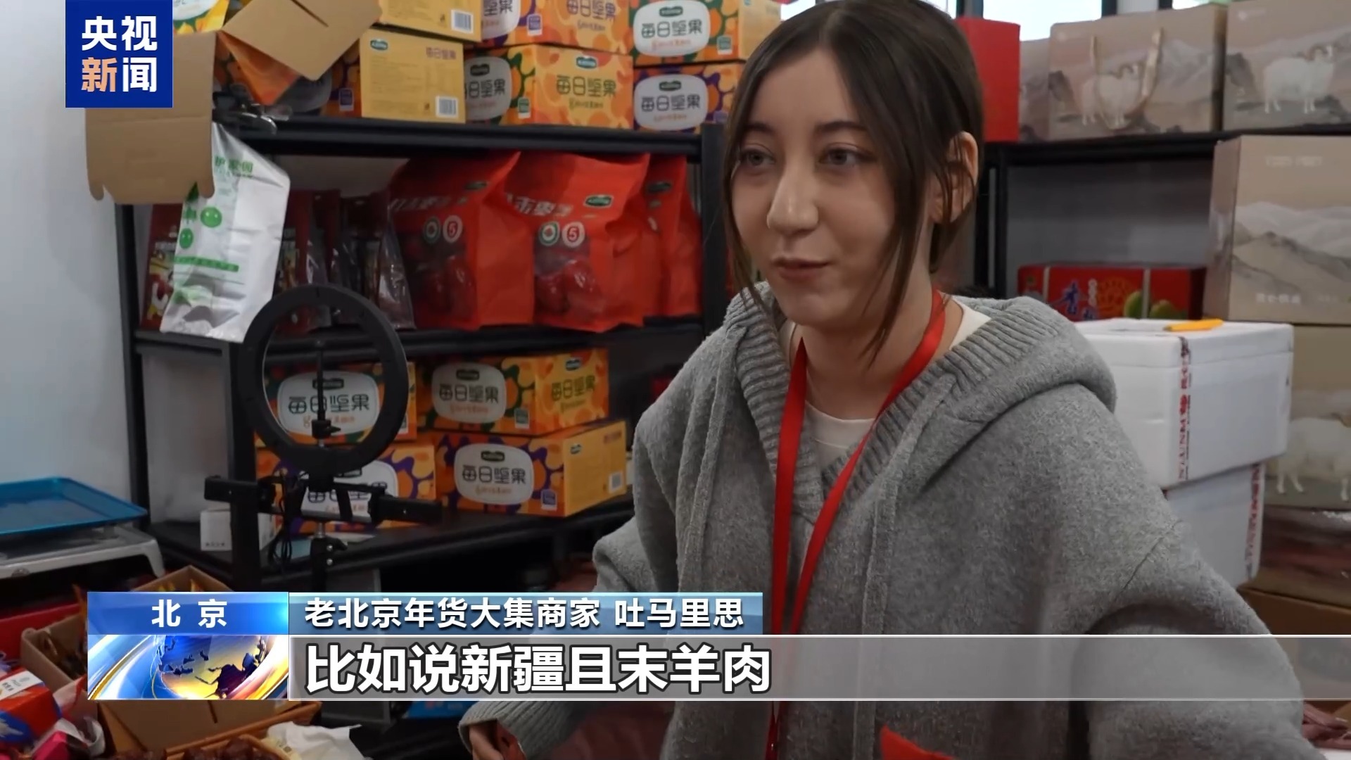 老北京年货大集商家 吐马里思:新疆且末羊肉还有干果,特别是有机的灰枣卖得特别好。