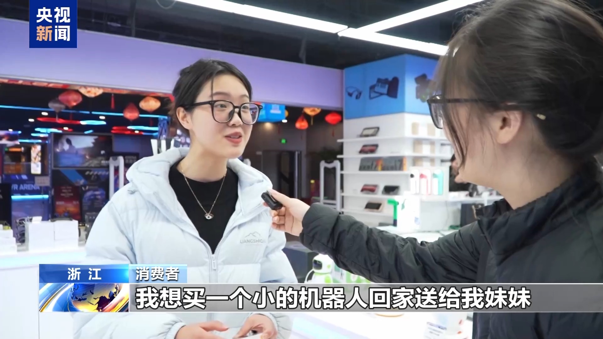 消费者:我想买一个小的机器人回家送给我妹妹,现在都有机器人上春晚嘛,她回去也可以炫耀一下。