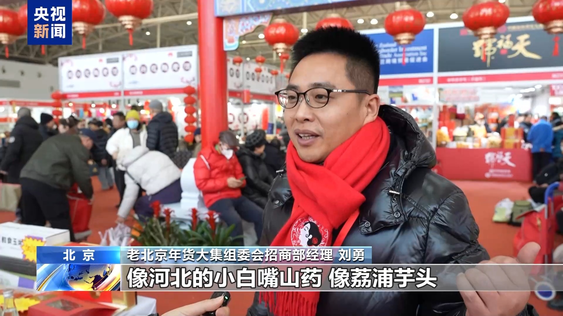 老北京年货大集组委会招商部经理 刘勇:今年我们也着重找了一些好年货。像河北的小白嘴山药、荔浦芋头,各个产地的代表性产品都比较受欢迎。