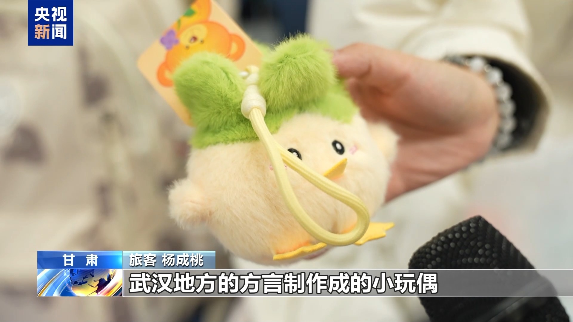 旅客 杨成桃:我买的是武汉的“蒜鸟”,武汉方言“算了”的玩偶,心情烦躁你可以捏一下,感觉挺有趣的。