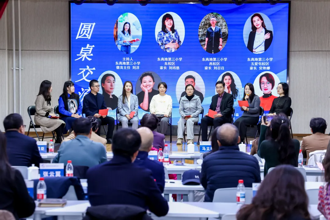 在家长圆桌沙龙上,来自东南和学区各校的家长代表们分享了经验心得。东高地三小家长通过“家长讲堂”“空天教育”等特色活动,深度参与孩子校园成长,助力航天特色育人落地;五爱屯小学家长在 “家长智汇堂” 平台中互帮互助、共同成长;东高地四小、和义学校家长分享了家风建设中包容沟通、互敬互谅的相处之道;槐房小学、钱学森中学家长则介绍了培育孩子阅读习惯的实用技巧与长效方法。