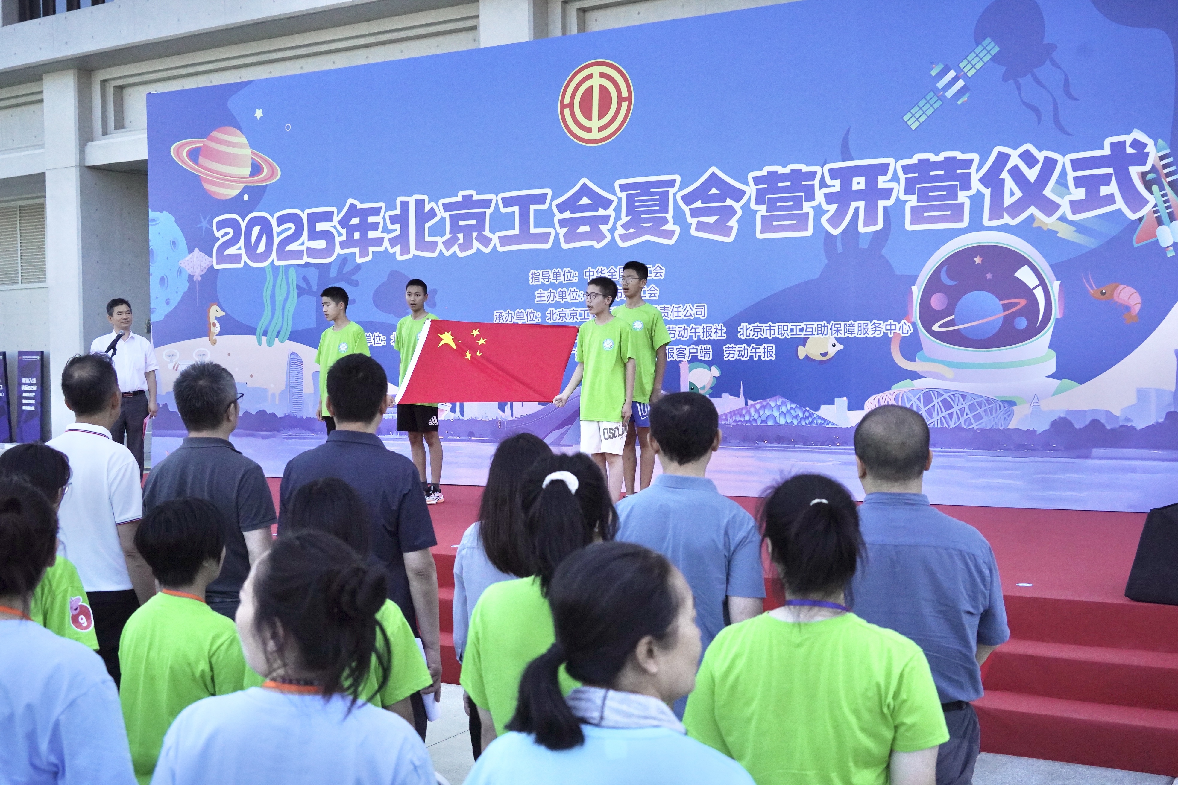 张良为夏令营授旗并宣布“开营”,标志着此次夏令营正式启动。据了解,本次夏令营作为全国总工会举办的工会夏令营活动之一,重点面向10至15岁的烈士(含因公牺牲职工)、困难职工、新就业形态劳动者、农民工、少数民族职工子女等五类群体。4天活动期间,千名小营员将通过参观居庸关长城、工体、鸟巢、水立方,进行爱国主义教育;通过探秘工体富国海底世界、北京科学中心、北京城市副中心三大文化建筑,进行科学文化熏陶;并通过趣味运动会、《写给爸爸妈妈的一封信》、学霸讲座等活动,在实践中感悟劳动精神,在互助中培养集体意识。