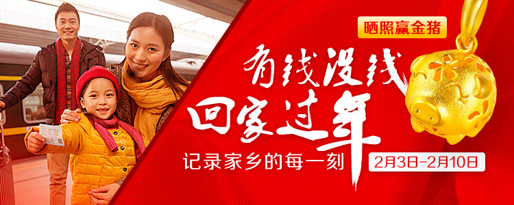 活动主题:拍下能代表自己家乡过节氛围的照片参与活动(比如,你的家乡是黑龙江,你可以拍一张和冰灯的合影;比如,你的家乡是重庆,你可以拍一张和家人朋友吃火锅的照片),并附上图片描述,形容一下家乡的过年气氛。*上传图片不得使用网络图片,作品如涉广告宣传将取消参与资格。