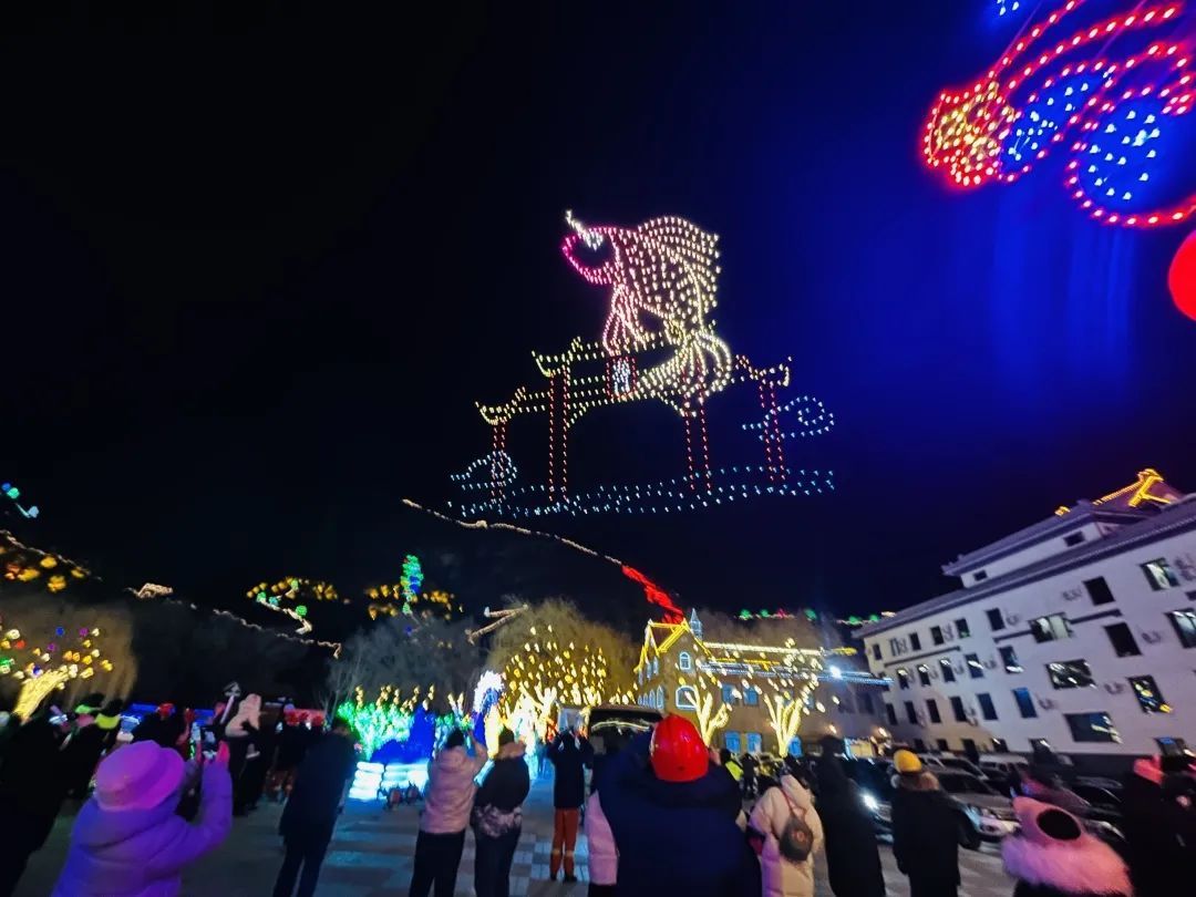 在延庆,无人机参与到文物保护、经济作物植保、应急防火、森林巡查、河湖巡查、基层治理等方方面面。而在龙庆峡冰灯冰雪嘉年华上的无人机主题表演,更是无人机在延庆多元、广泛应用的有益探索。此次表演由1000架无人机组成,在美丽夜空下,无人机展现出鲤鱼跃龙门、 飞龙在天等10幅震撼图像,给游客带来了一场无与伦比的视觉体验,无人机为旅游注入了科技元素和新的活力。