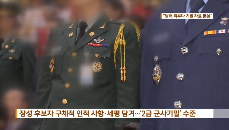 字幕:"资料含候选人具体个人信息、评价,属于二级军事机密"(KBS截图)