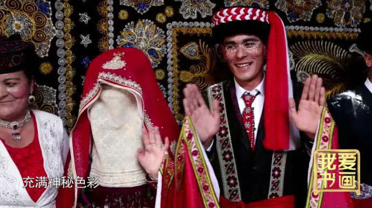 塔吉克族的接亲环节“困难重重”,新郎要在伴郎以及亲朋好友们的陪同下一步一停地前往举办婚礼仪式的房间,期间双方的亲友还要进行比拼,哪方的喊声大,哪方的鼓声响亮,在这样热闹的气氛下,新郎顺利地迎接他的新娘,并在双方亲友们的见证下,共同宣誓成为夫妻。