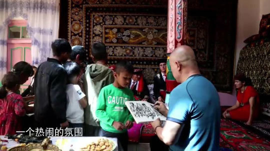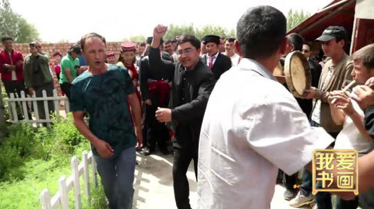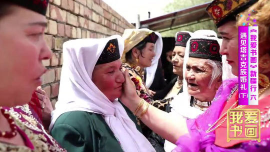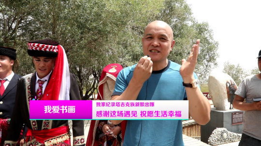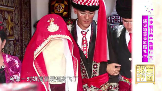 即将离开家乡,他们还要有一个特别的仪式。在帕米尔高原的金草滩边,在亲友们的陪伴下,新郎新娘载歌载舞告别家乡,他们感谢《我爱书画》栏目组的全程纪录,以及对他们的新婚祝福,新娘还诚挚地欢迎大家来冰山作客。