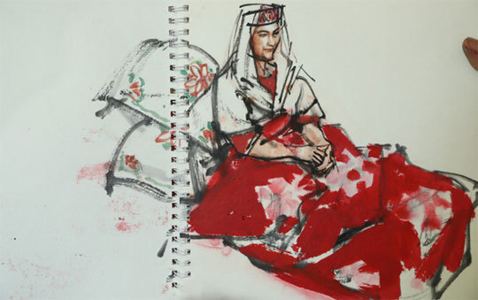 史老师目送他们的车远去,多么不想说再见,偶遇的时光虽然短暂,但美好的塔吉克族婚礼已留在了每个人的心间。两天的时间里,栏目组独家拍摄到了塔吉克族新娘从待嫁到出嫁的全过程,史老师用画笔记录下了一组组温馨的画面和场景,创作了数张精品水墨速写。感谢这场美好的遇见,感谢塔吉克族新娘一家人的友好热情,虽然祝福的话语说了很多遍,但仍要深深祝愿他们生活幸福美满!