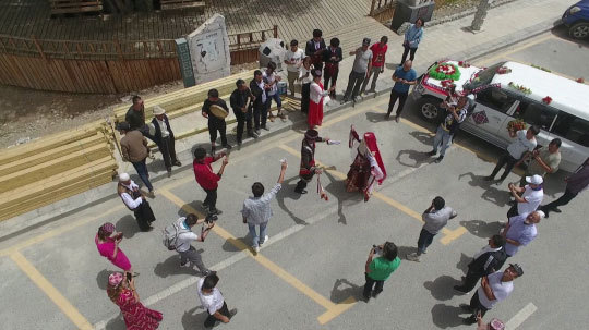 新郎新娘载歌载舞告别家乡
